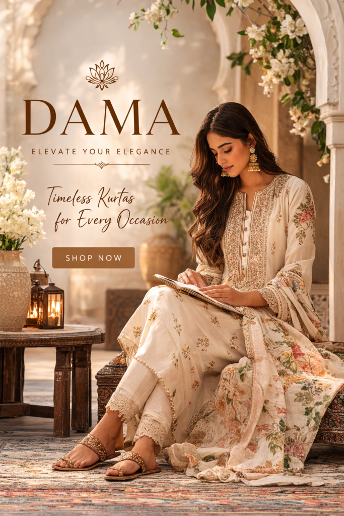Empowering the women with elegant fashion that blends tradition,comfort and modern style. *Beautiful suits *Kurta sets *Co ord sets *Elegant outfits for daily wear Helping customers choose the perfect outfit Order Now Why Choose DAMAPremium breathable fabrics Unique handcrafted designs Comfortable yet stylish Affordable luxury
